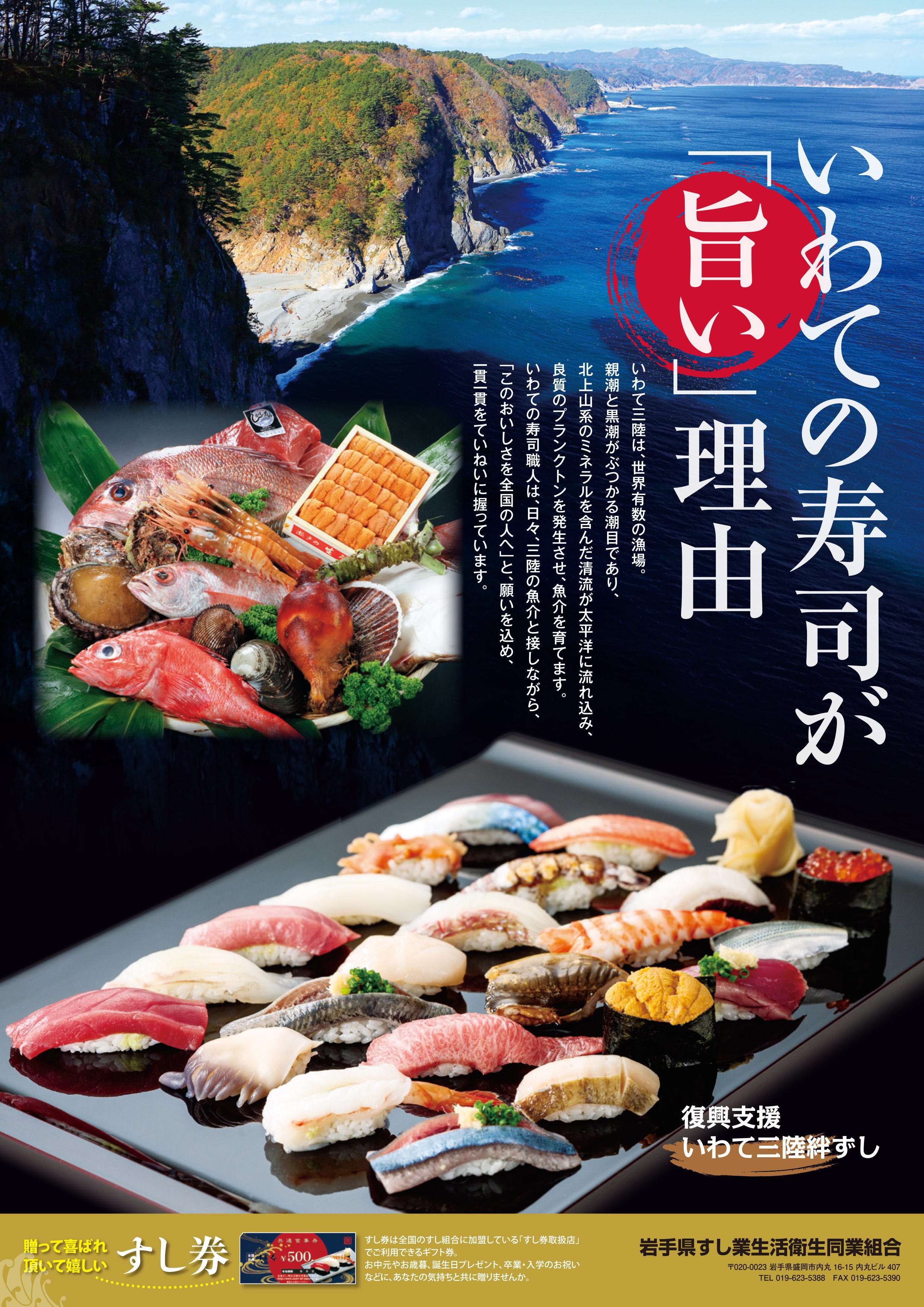 岩手縣壽司業生活衛生同業公會自2011年發生東日本大震災後,就開始著手支援受災的壽司業者以及協助受災地區的復興事業。