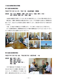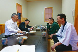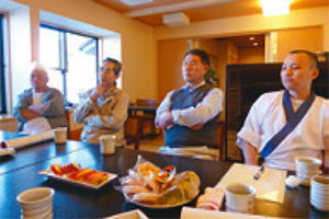 大船渡市、釜石市、山田町、宮古市、盛岡市において、被災地相談員、現地すし事業者との情報交換会を開催し、現地の状況把握、今後必要とされる支援策等について意見交換を行い、現地のニーズ把握を行いました。 平成27年10月1日 大船渡市 勇駒鮨 平成27年10月16日 釜石市 一助 平成27年10月26日 山田町 魚河岸 平成27年11月5日 宮古市 ふく留 平成28年2月22日 盛岡市 ホテル大観