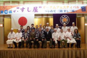| 日程:2016年10月26日(水) 場所:盛岡グランドホテル 第10回「ザ・“すし屋“ 三陸震災復興支援 オータムフェスティバル」が開催されました。 今回も多くの方々に三陸の海の幸を使った極上のお寿司&お酒をお楽しみいただきました。 すしフェスティバルは今回でファイナルとなります。 今後また別の形での企画を検討中です。 情報はイベント案内(お知らせ)にてご案内します。