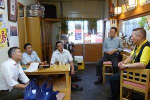 | 大船渡市、釜石市、山田町、宮古市において、被災地相談員、現地すし事業者との情報交換会を開催し、現地の状況把握、今後必要とされる支援策等について意見交換を行い、現地のニーズ把握を行いました。 震災から5年が経ち、被災地のインフラや町並みの整備は進んでいますが、同時に工事関係者の減少により店舗の利用者も減るなど、組合員の店舗にも影響があります。 魚をはじめとする食材価格の高騰、地元の人口の減少、経営者の高齢化など、被災組合員の抱える問題は変わらず、むしろ深刻になる状況もあります。 情報の共有、発信による復興支援をさらに進めていく必要を感じました。 平成28年9月15日 大船渡市 勇駒鮨 平成28年9月30日 釜石市 竹すし 平成28年12月1日 山田町 魚河岸 平成28年12月12日 宮古市 ふく留 平成29年2月20日 盛岡市 ホテル大観
