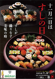 | 毎年11月1日は「全国すしの日」です。 新米に脂ののった魚など食材が美味しさを増す秋。 各地で「すしの日」を中心にイベントやキャンペーンも開催 されます。 美味しい寿司をお召し上がりください。 |